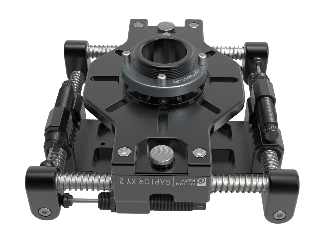 Custom Easy XY (Raptor XY2) is a vibration isolator. Absorbs pulsations in the X and Y horizontal axes to reduce vibrations and ensure smoother camera movements during dynamic shots. Adjustable hydraulic shocks, drag adjustment, and lock-off capabilities provide precise control for filmmakers. System supports Mitchell-mount camera heads.